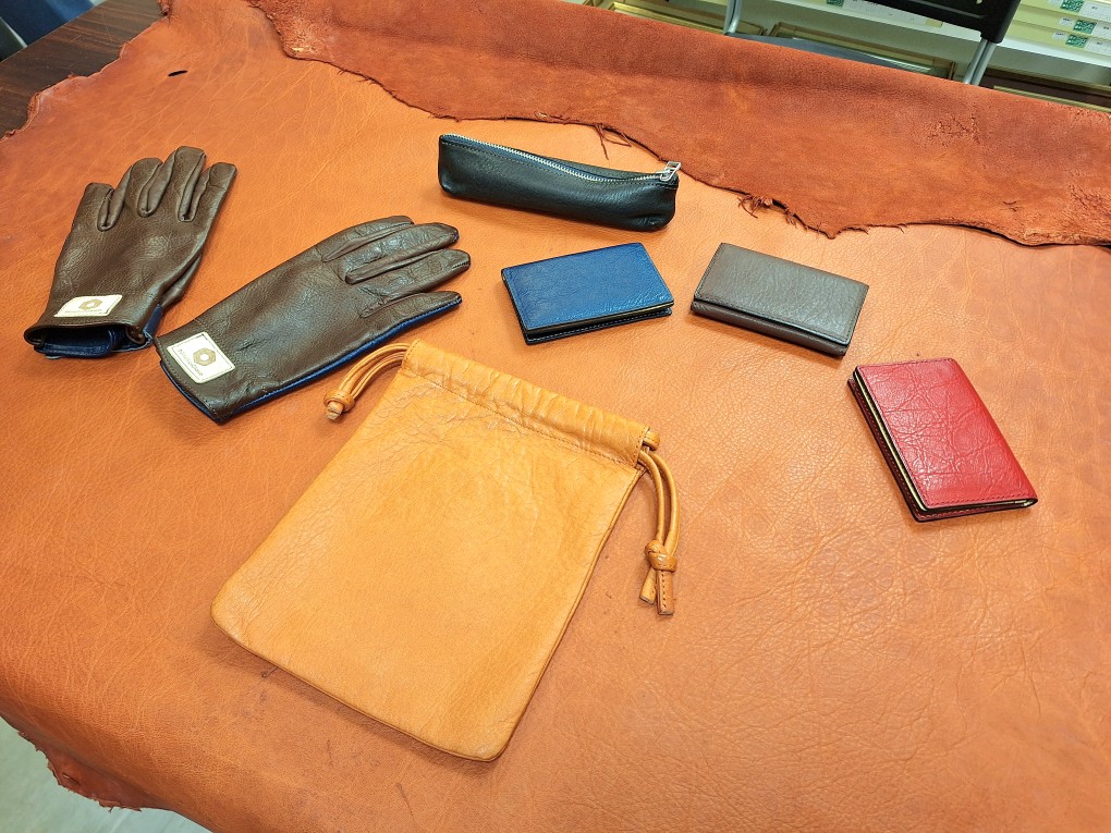 (写真は、エゾシカの革で制作した小物類)