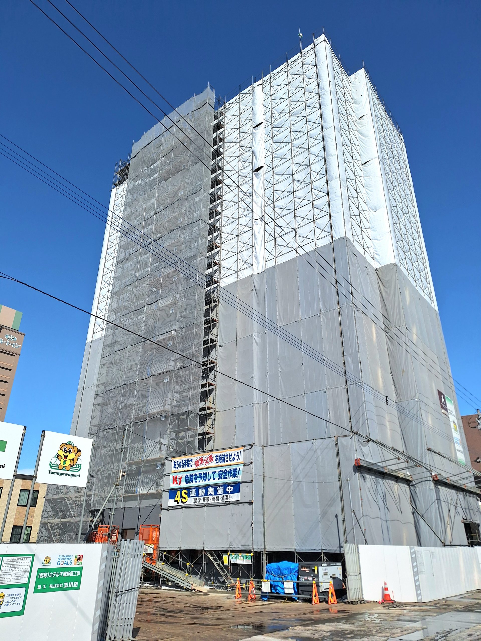 2026年秋頃に開業予定なのは、JR千歳駅前の「ラ・ジェント・ステイ」(仮称、千歳市栄町6丁目)。パチンコ「ゴールドラッシュ千歳店」跡地を利用して、現在建設中。建築主は大和ハウス工業(本社・大阪市北区)、設計、監理はランドブレイン(本社・札幌市中央区)、施工は福田組・山﨑建設工業建設共同企業体。土地は、山三ふじや(千歳市)グループの山三ビル管理が所有しており、大和ハウス工業が、定期借地権を設定して賃借する。地上10階建て、客室数は206室。千歳市内には、2026年中に4ホテルが開業し、ホテル不足解消に一歩近づく。