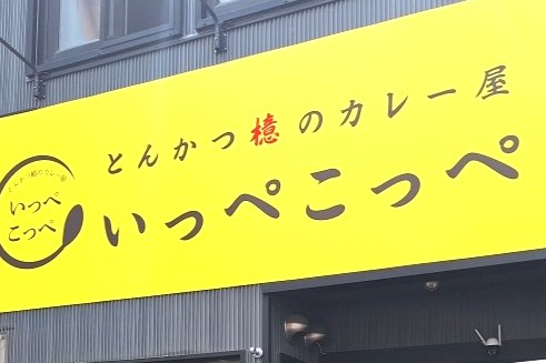 (写真は、とんかつ檍のカレー屋「いっぺこっぺ」の店舗看板)