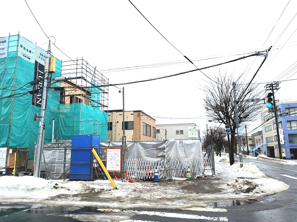 「ハナウタ白石本店」のオープンから10年、薮田テナントビルは、老朽化のため建て替えられることになり、同店は、2025年9月15日で「GYOZADAY」とともに閉店した。既存建物の解体を経て、新テナントビルの建設工事が、同年12月8日から始まった。建築主は旧ビルと同一の個人で、設計、監理は三井ホーム北海道(本社・札幌市北区)一級建築士事務所、施工は三井ホーム北海道。工期は、2026年3月31日までとなっている。「ハナウタ白石本店」の再開まであと4ヵ月弱、人気ラーメン店が、新しい店舗として戻ってくる。