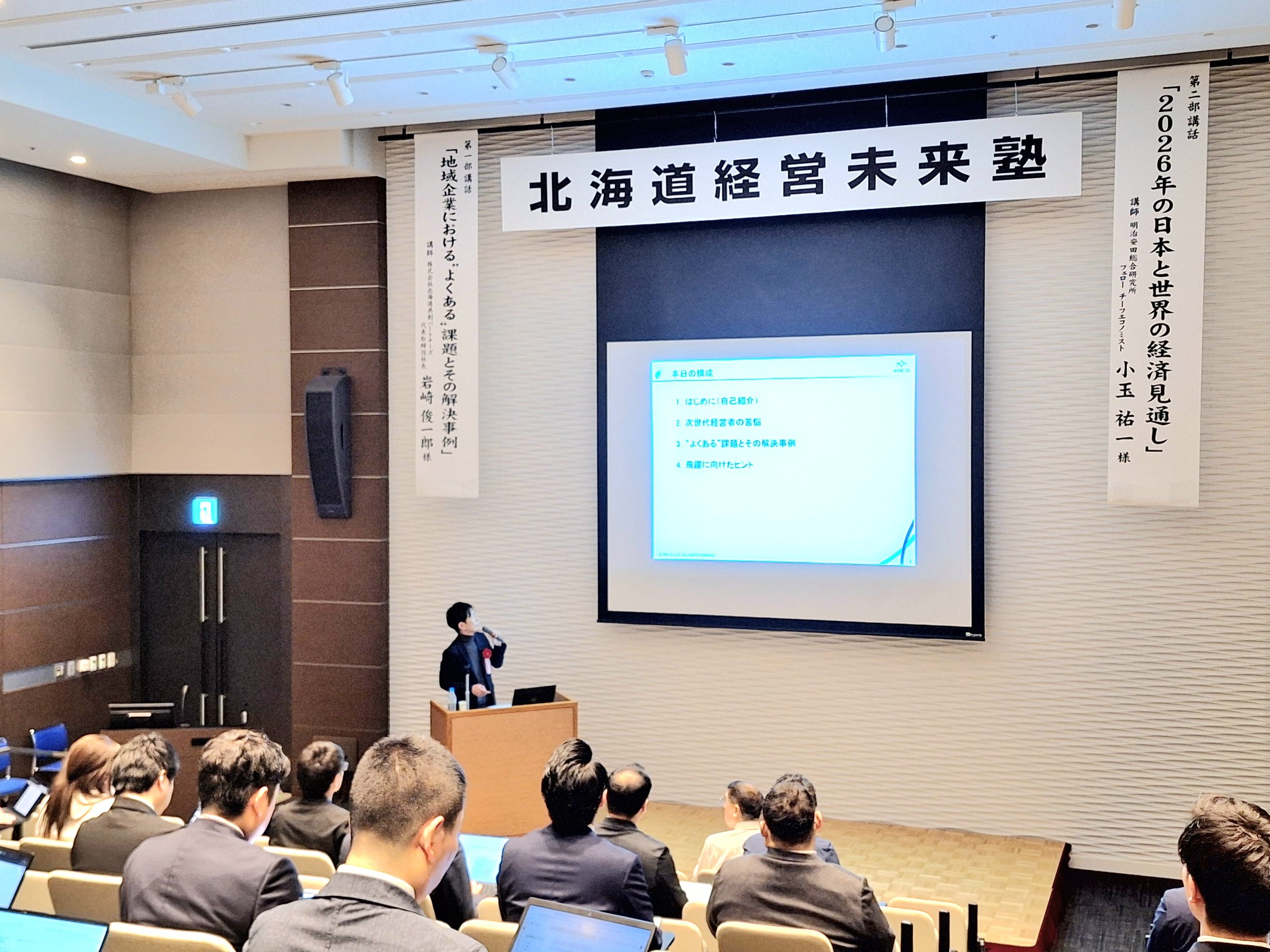 道内の若手経営者を官民連携で育てる北海道経営未来塾(実行委員長・長内順一未来経営研究所社長)は2026年2月10日、経営実務講座を開催した。経営実務講座は、道内2行が輪番で主催するもので、今回は、北洋銀行(本店・札幌市中央区)が担当した。