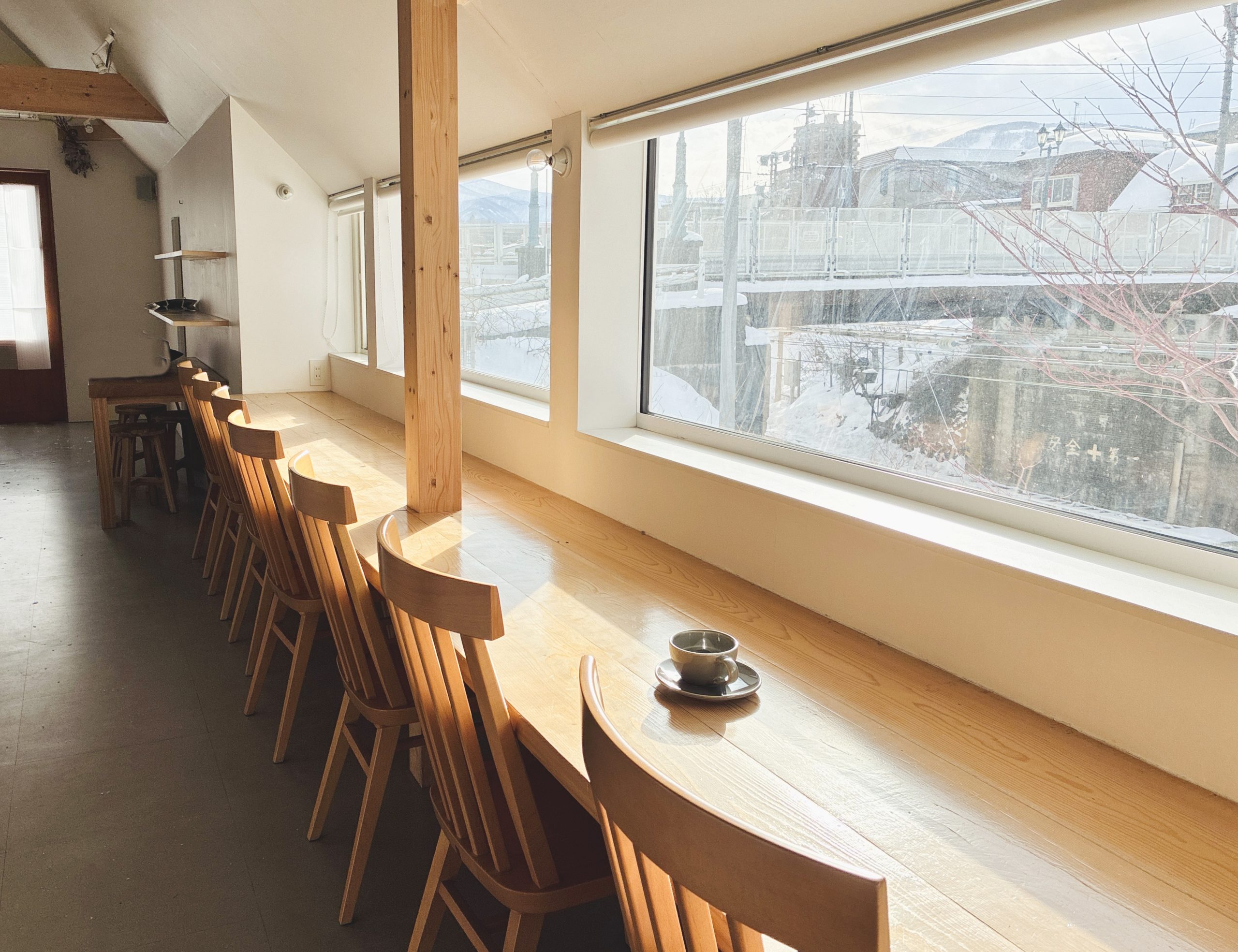 また、テイクアウトでは、店舗限定の「坂と線路バゲット」、バゲットとは思えない食感の「バゲット・ヴィエノワ」などを揃え、焼き菓子も充実している。建物は、ほぼ以前のまま使われており、店内の高い天井とそこから吊るされたシーリングファン、ところどころに見える木の柱と梁、長方形の広い窓が落ち着いた空間を演出している。カウンターの窓からは、函館本線の線路とポイントが見え、時折走る気動車の躍動も体感できる。