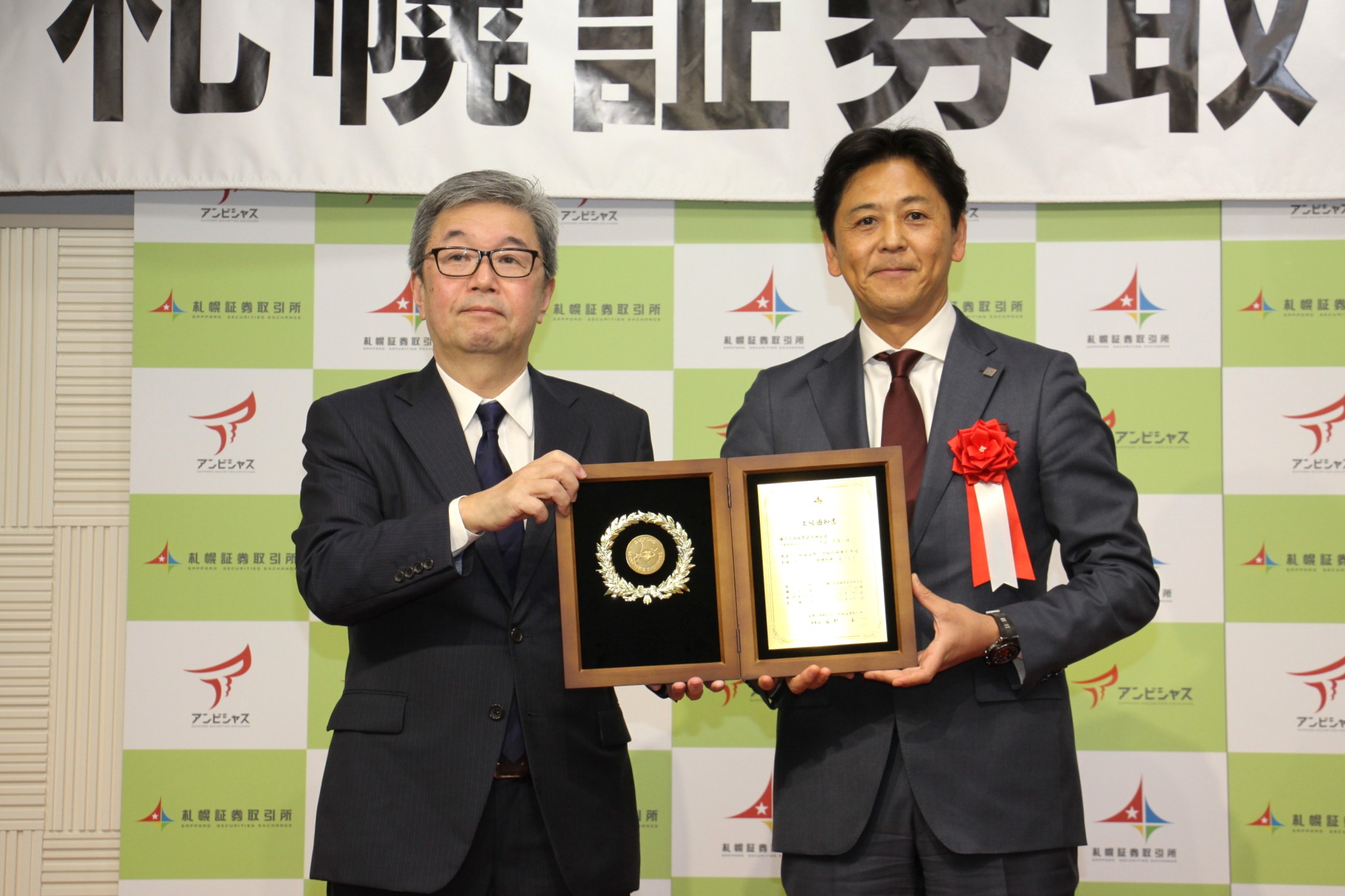この日、札証2階会議室で行われた交付式で、札証の長野実理事長は、「北海道は、産業構造の大きな転換期を迎えているが、道内大学卒業生の大半が本州に流出している。札証上場を機に北海道で事業を強化され、経営ノウハウを発揮して人材の質の向上、道内産業の人材供給にもひと役買っていただきたい」と話した。城南進学研究社の千島克哉社長は、「経済格差や地域格差による教育格差が広がっている。47都道府県で、不登校は過去最高を更新しており、北海道でも12年連続で過去最を更新し、全国での割合も高い。札証上場によって、北海道が抱えている教育に向き合い、課題解決に具体的に取り組みたい」と挨拶した。