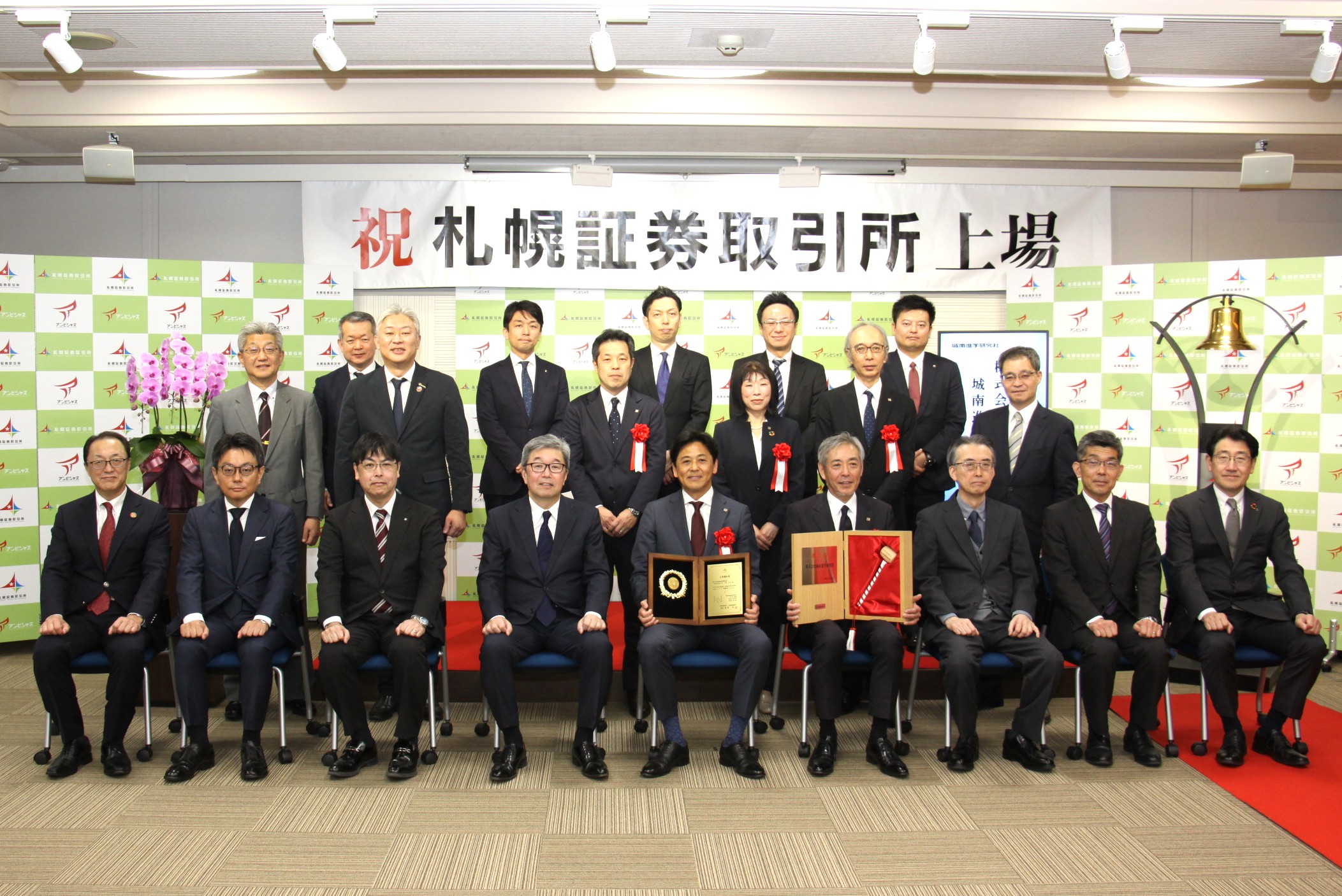 (写真は、城南進学研究社の札証本則上場セレモニー後の集合写真)