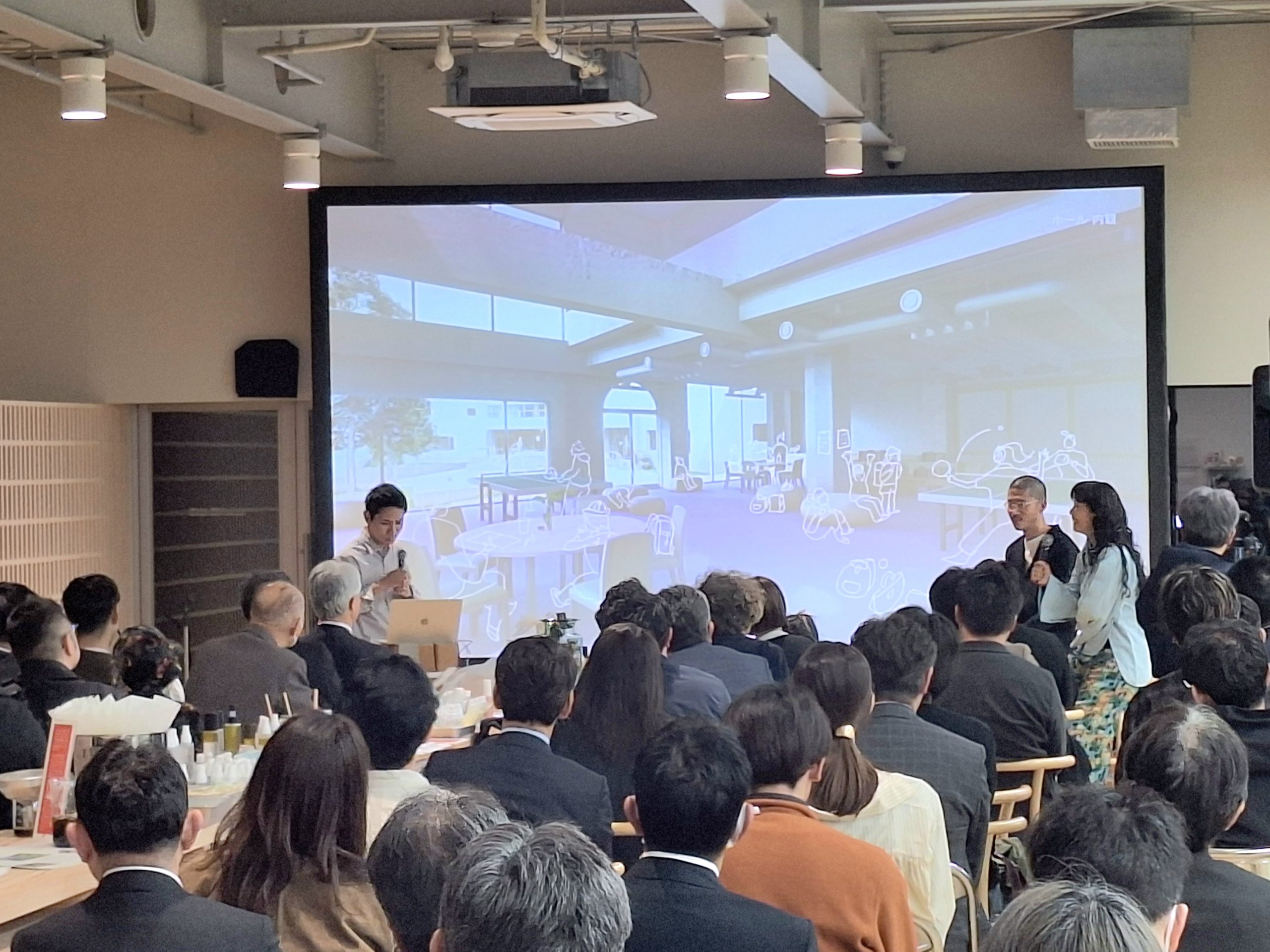 砂川市発祥で市内に「みんなの工場」(豊沼54-1、市立江陽小学校跡地)を有するシロ(本社・東京都港区)は2026年4月10日、「みんなの工場」を会場にして「砂川パークホテル」のリニューアルについて、市民向け説明会を開催した。