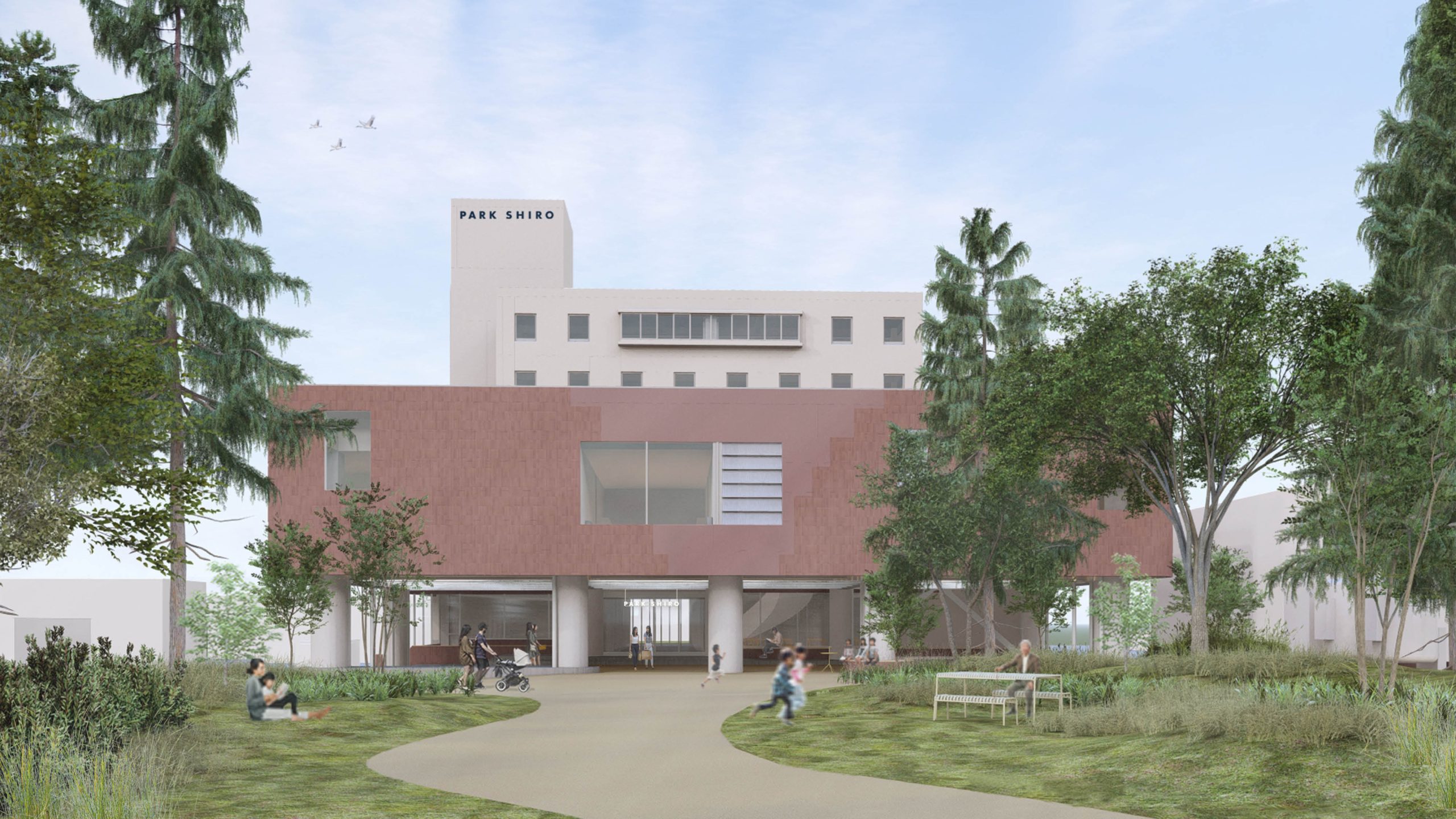 名称は「PARK SHIRO」として、市民に親しまれた「パーク」の名前を踏襲、宿泊施設「みんなのホテル」とサービス付き高齢者向け住宅「みんなのおうち」で構成する。ホテル内には温浴施設やレストラン、多目的ホールのほか、SHIROブランドで初となるセカンドハンドをテーマにしたショップも導入する。ロビーを吹き抜け構造にして明るい空間に変え、宴会場は、多目的ホールとして宿泊者以外も自由に使え、イベントや宴会もできるようにする。