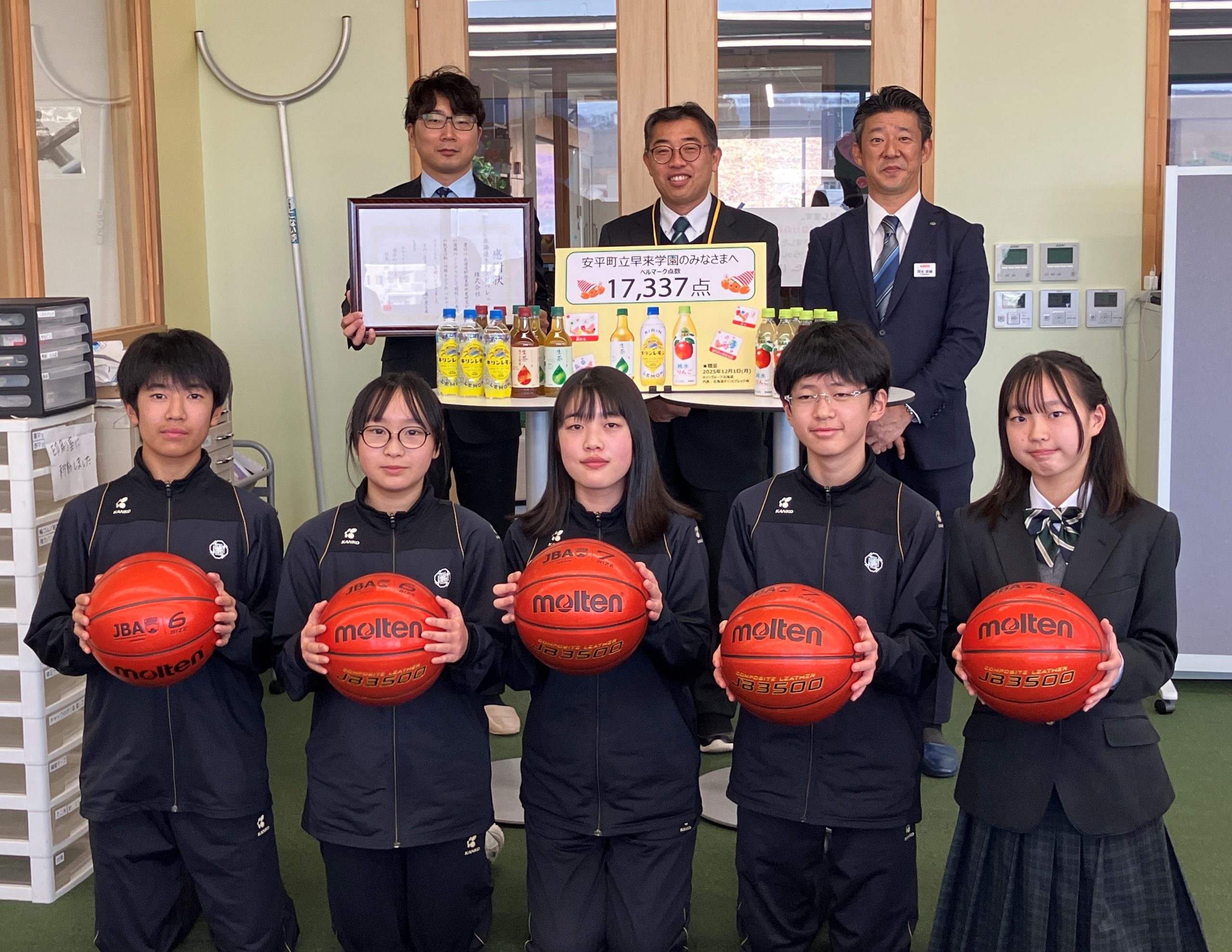 北海道キリンビバレッジ、安平町立早来学園にベルマーク1万7千点寄贈