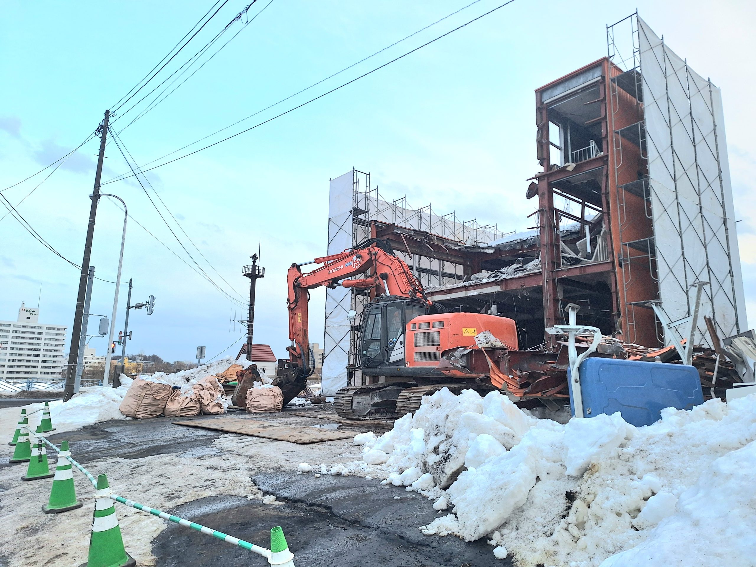 建物は、1981年12月に建てられた鉄骨造2階建てで、延べ床面積は約82坪(272㎡)。45年間にわたって倉庫や事務所として利用されていたが、このほど解体工事が始まり、屋上看板は撤去され、壁に掲げられていた5文字の漢字看板も外された。大友運送によると、「本社を白石区の配送総合センター内に移転したため、解体することにした。解体後の土地利用は未定」と話す。当たり前にあった看板が消え、街角の風景が変わっていくことに少しばかりの寂しさが募る。
