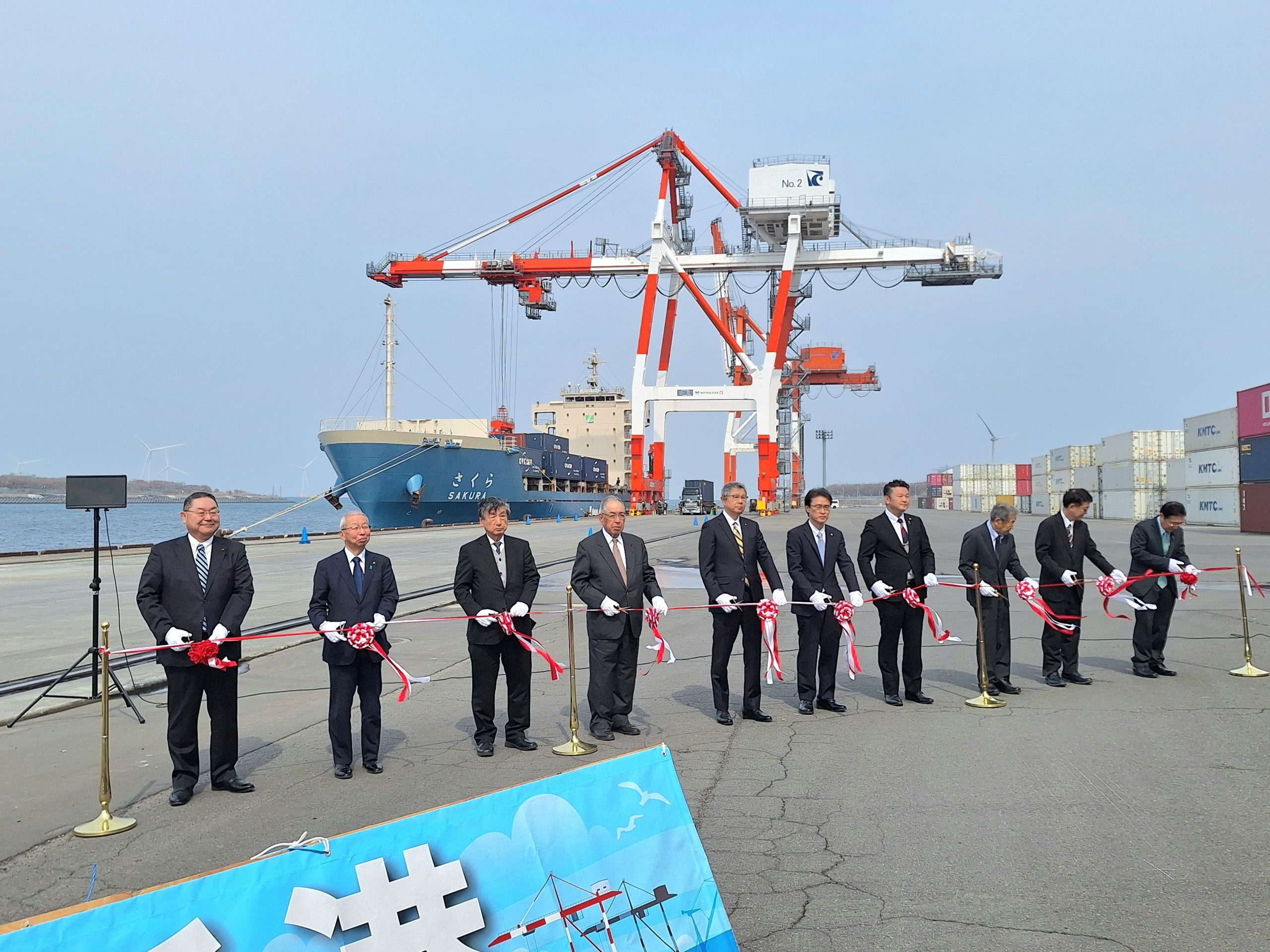 運航船舶は、「さくら」(総t数2507t、コンテナの積載本数は20フィートコンテナ402個、2016年8月建造)。毎週月曜日に石狩湾新港に寄港する。就航を記念してこの日、石狩湾新港花畔埠頭コンテナヤード内の花畔1号・2号岸壁で記念式典が行われ、関係者約40人が出席した。石狩湾新港管理組合議会の佐々木大介議長は、「新航路は、これからの石狩湾新港の可能性を生かすチャンスになる。北海道は、農業や漁業の一次産業が主力になっており、今後は、北海道の農産品の輸送を通じて、地元経済の発展に繋がることを望んでいる」と挨拶した。