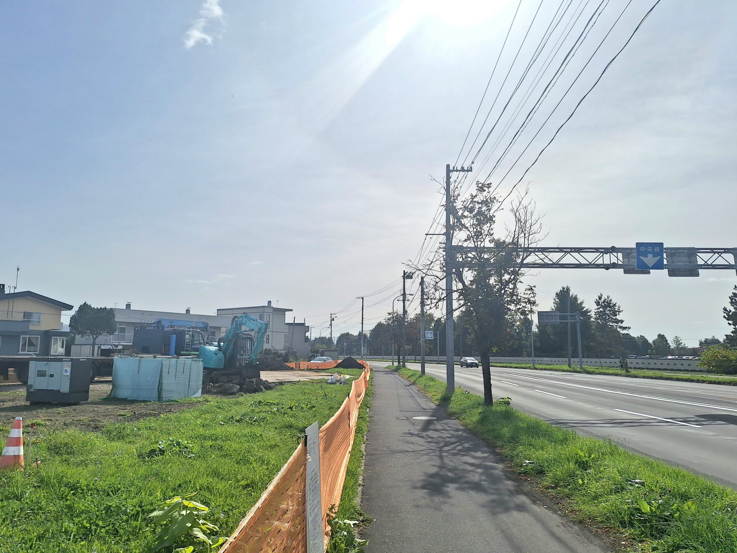 セブン-イレブン・ジャパン(本社・東京都千代田区)は、2025年冬、「セブン-イレブン」店舗を旭川市春光3条7丁目に新規出店する。現在、建設中で2025年12月に竣工予定。(写真は、旭川市春光3条7丁目で始まっている「セブン-イレブン」店舗の建設工事。右は花咲通)