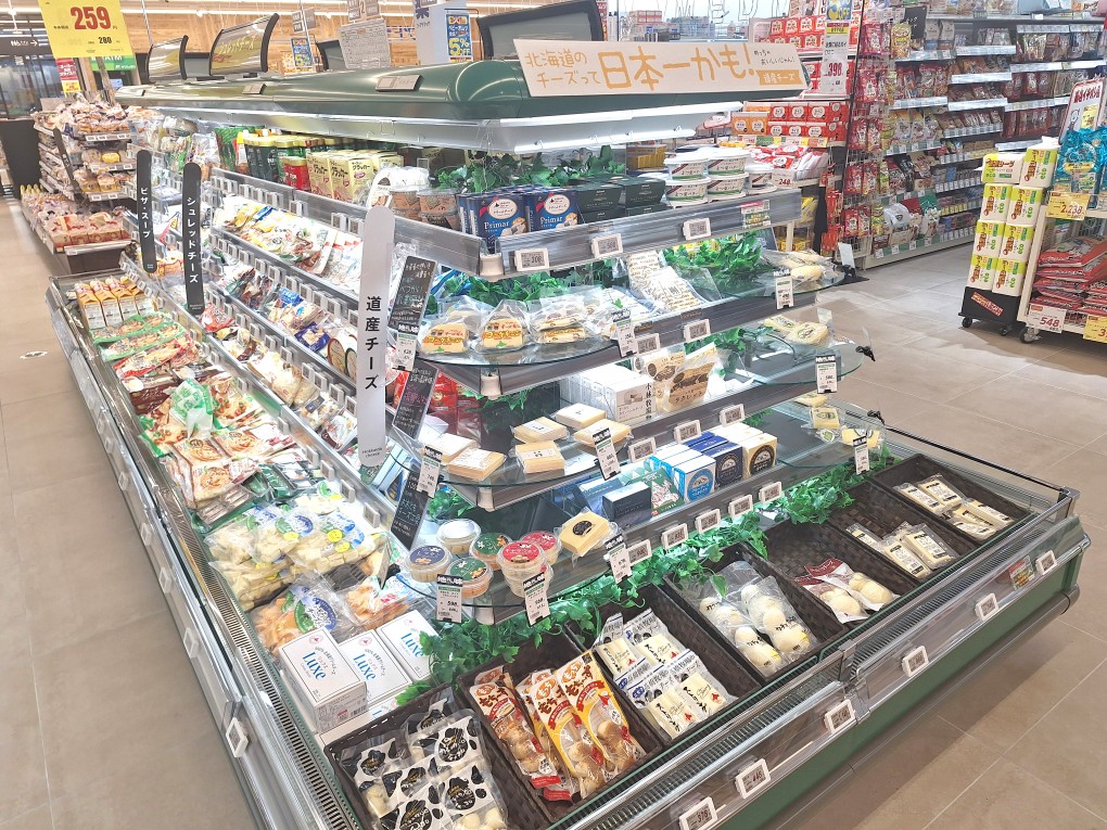(写真は、道産チーズのコーナー)