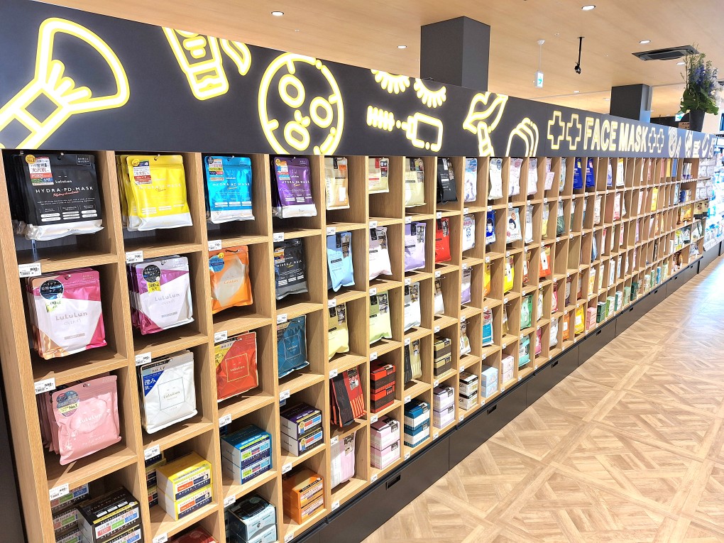 (写真は、約140種類が並ぶ「フェイスマスクコーナー」)