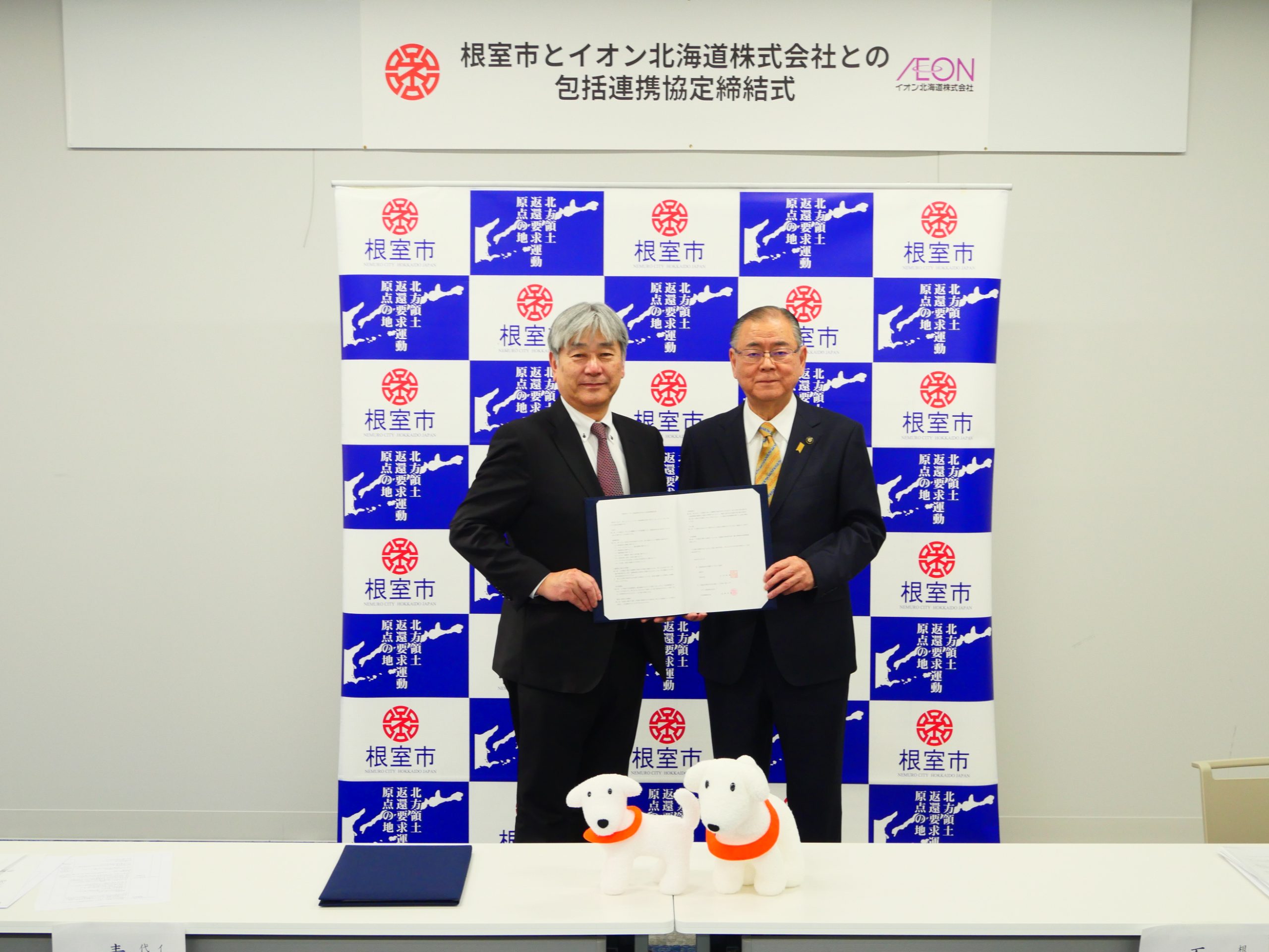 イオン北海道(本社・札幌市白石区)は、厚岸町、根室市とそれぞれ包括連携協定を締結した。