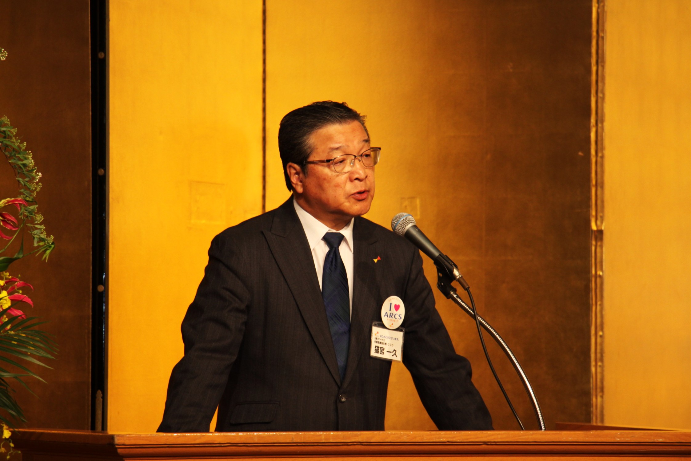 (写真は、祝辞を述べる猫宮一久社長・COO)