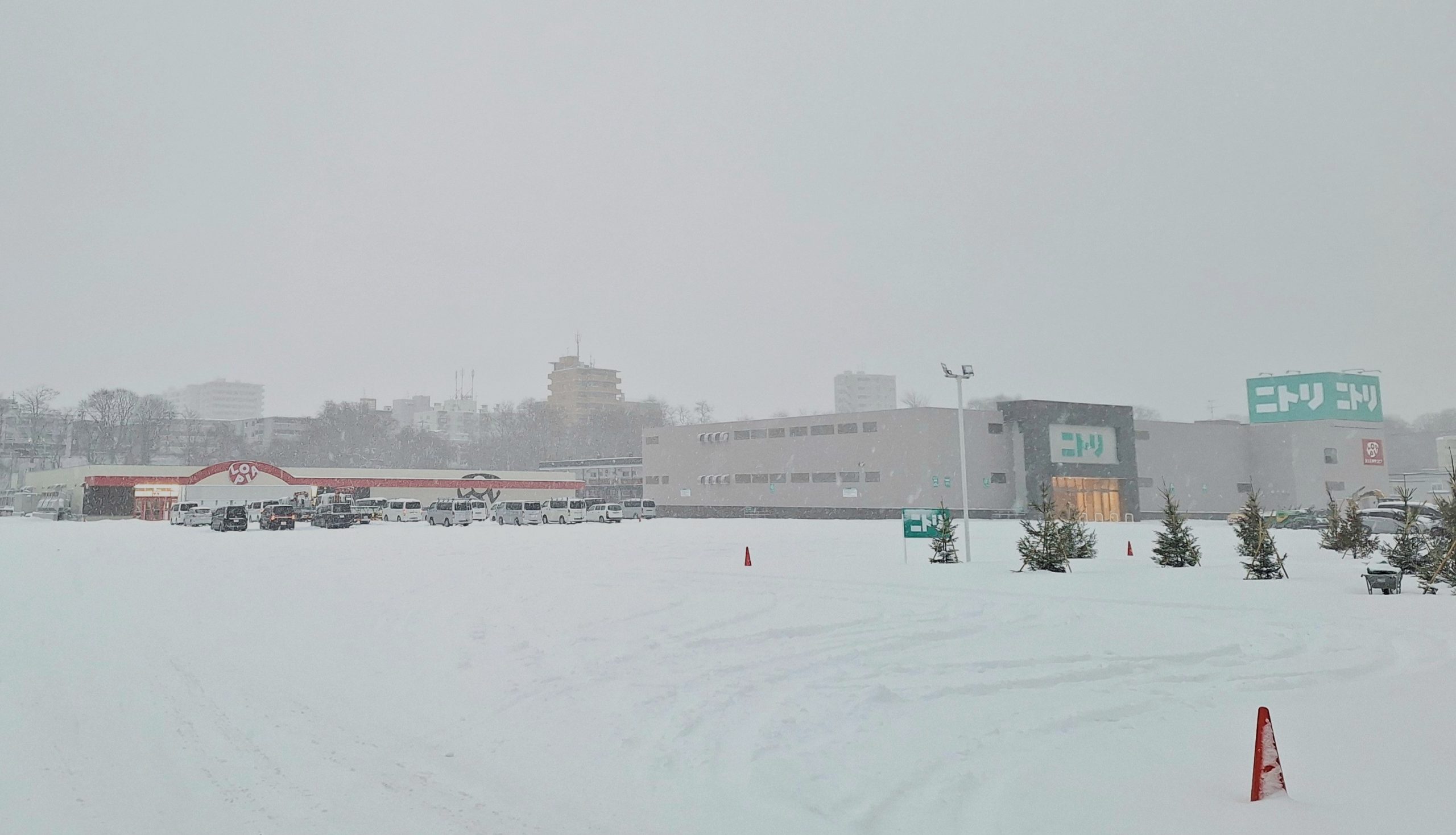 雪の中でオープンを待つ「ニトリ」と「ロピア」