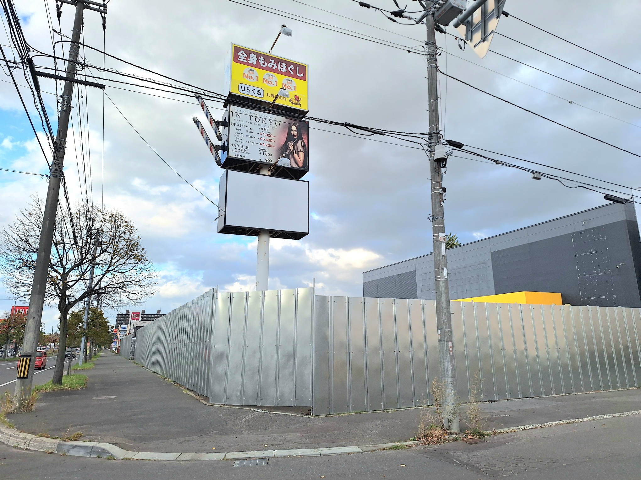 4店舗の閉店を受けて、各建物の解体工事が始まったのは、2025年10月1日。敷地周辺には、仮囲いが施されて内部の解体が進んでいる。土地所有者は個人だが、解体工事の注文者は、大和ハウスリアルティマネジメント(本社・東京都千代田区)。工事期間は2026年5月31日までとなっている。土地面積は約1246坪(4112・85㎡)。周辺は、CiiNA CiiNA屯田を中心に商業施設が集積している。解体後には、新たな商業施設の建設が始まりそうだ。