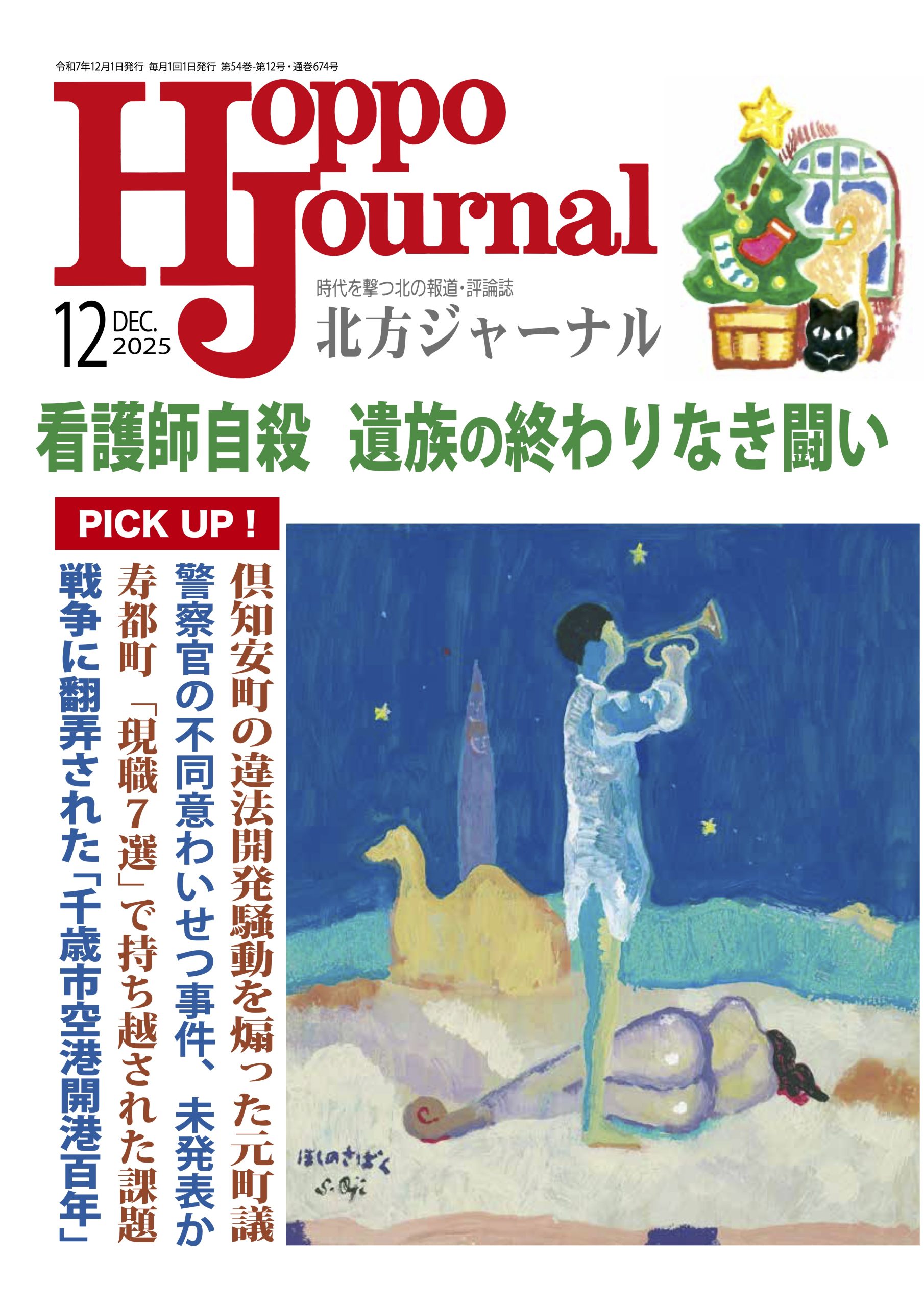 このほか札商の新会頭に就任した安田光春・北洋銀行会長の手腕を探った人物レポート、管内の最新情勢を探った恒例のオホーツク特集、新千歳空港の知られざる軌跡を探った「千歳市空港開港100年」などもオススメ。道内の事件、話題が詰まった北方ジャーナル12月号のお買い求めは、離島にいる方も都会に住んでいる方もお近くのセイコーマートへ。大手書店、アマゾンなどでも購入可能。北方ジャーナルへの問い合わせや注文などは、右側下にある同誌のバナーをクリック。
