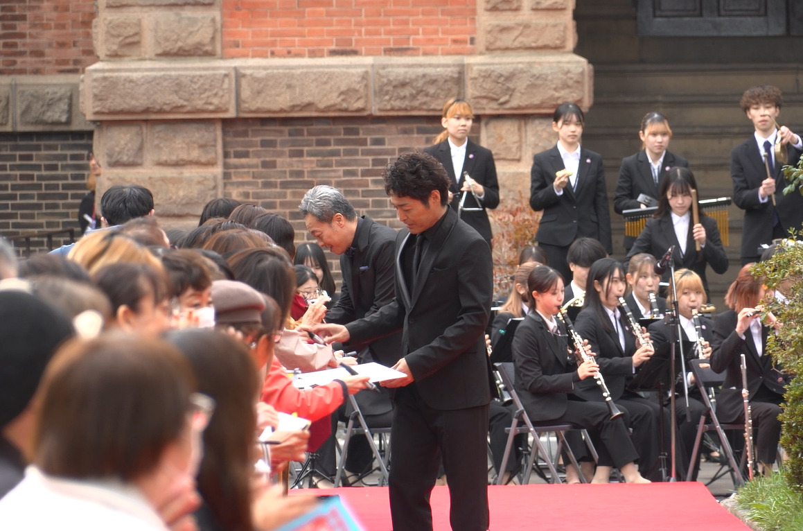 オープニングでは、北海学園大学吹奏楽団の演奏も行われた。するとまた、雨が。大泉さんは、「また雨が!今度は強い!なるべく皆さん傘をたくさん持ってきてください」、「やっぱりちょっと一回、私、帰ってもいいですか」と懇願する場面も。「本当に申し訳ない気持ち。今日、ここに来る途中にマネージャーが私にこう説明してくれました。10月10日というのは、統計的にも一番北海道が晴れる。この何十年を見ても、10月10日に雨が降ることはまずないと。それで、今日を選定したんだと。とんでもない日を選んでくれたなと。朝、雨が降っていたようなんですが、昼から晴れるという予報で安心していましたが、私の登場とともに見事に雨が降りました」