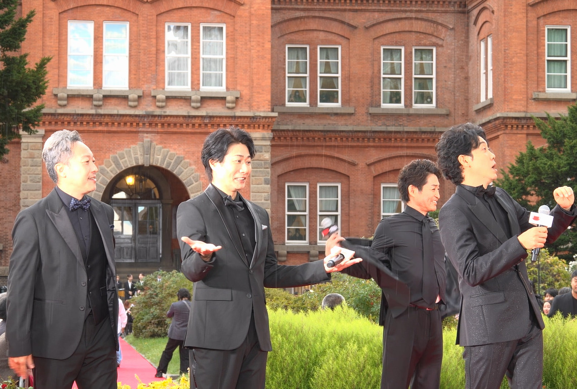 (写真は、レッドカーペットを歩きながらファンのサインに応じるTEAM NACSの安田顕さんと音尾琢真さん)