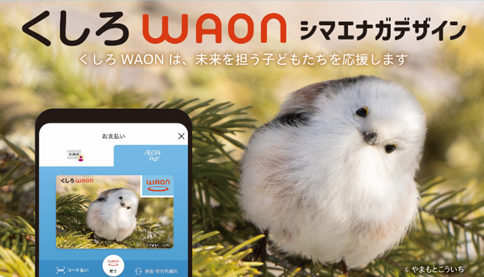 (画像は、iAEON、イオンウォレット向けの「くしろWAON」の「シマエナガデザイン」)