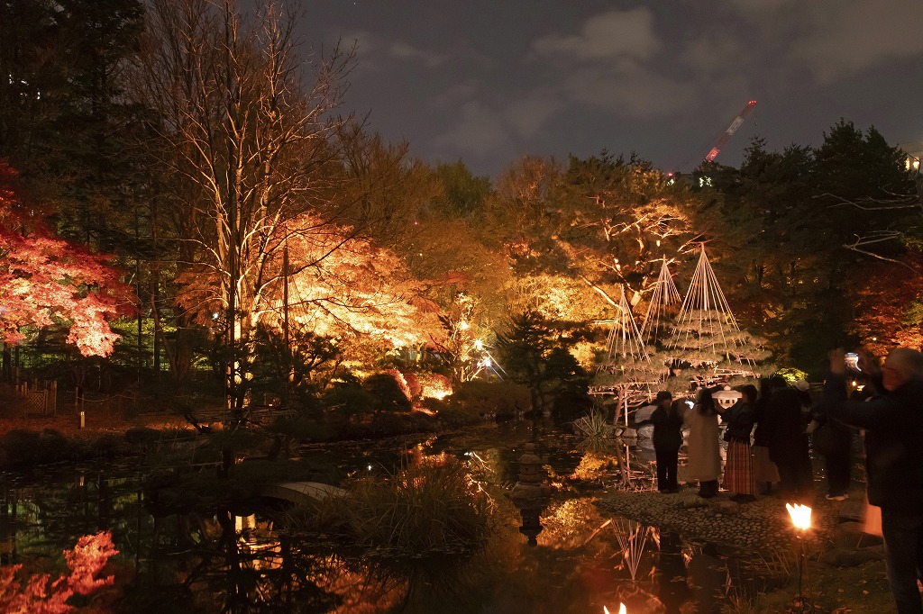 (写真は、2024年10月に開催された「中島公園紅葉ライトアップ」の日本庭園)