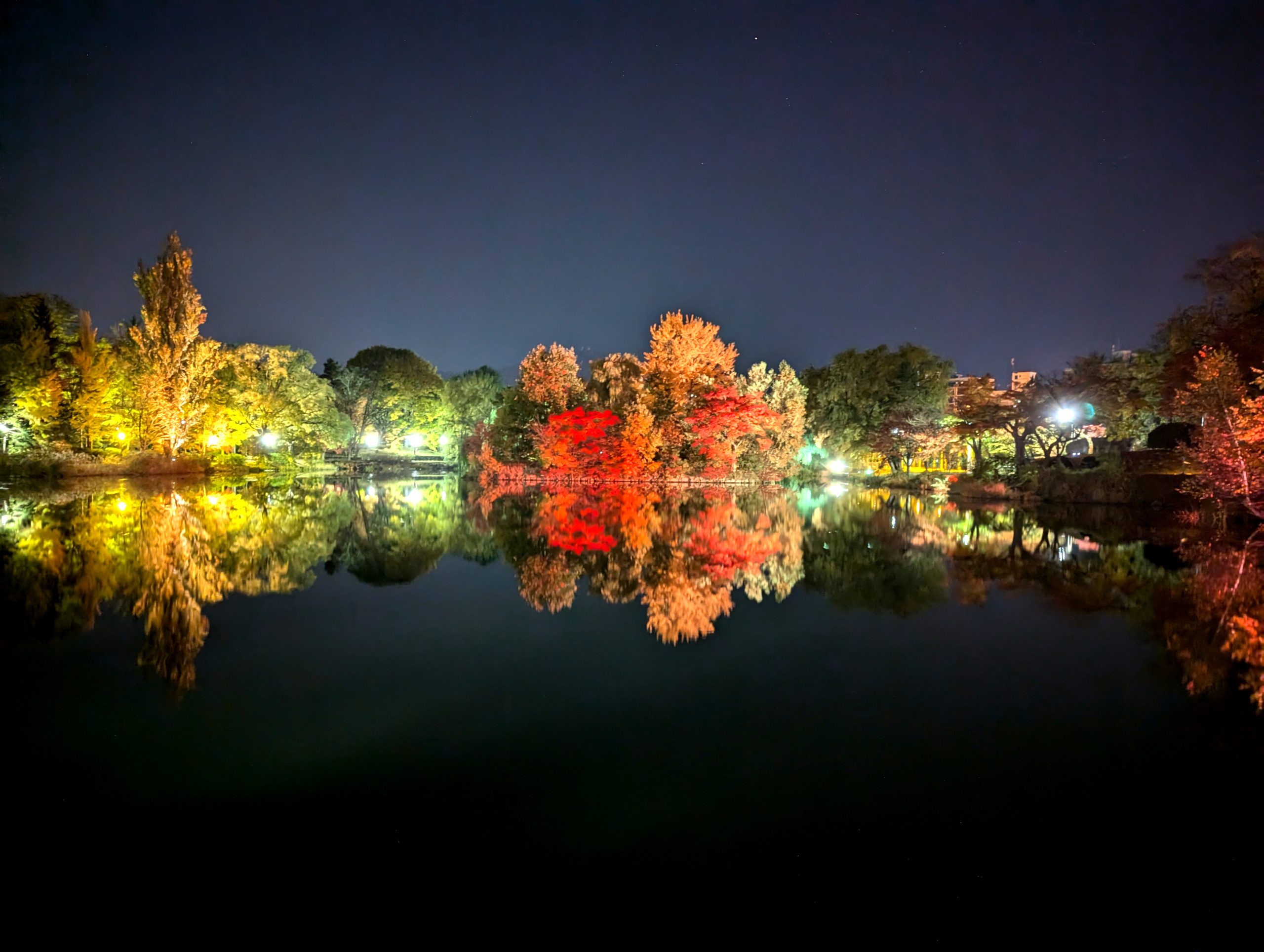 (写真は、2024年10月に開催された「中島公園紅葉ライトアップ」の菖蒲池)