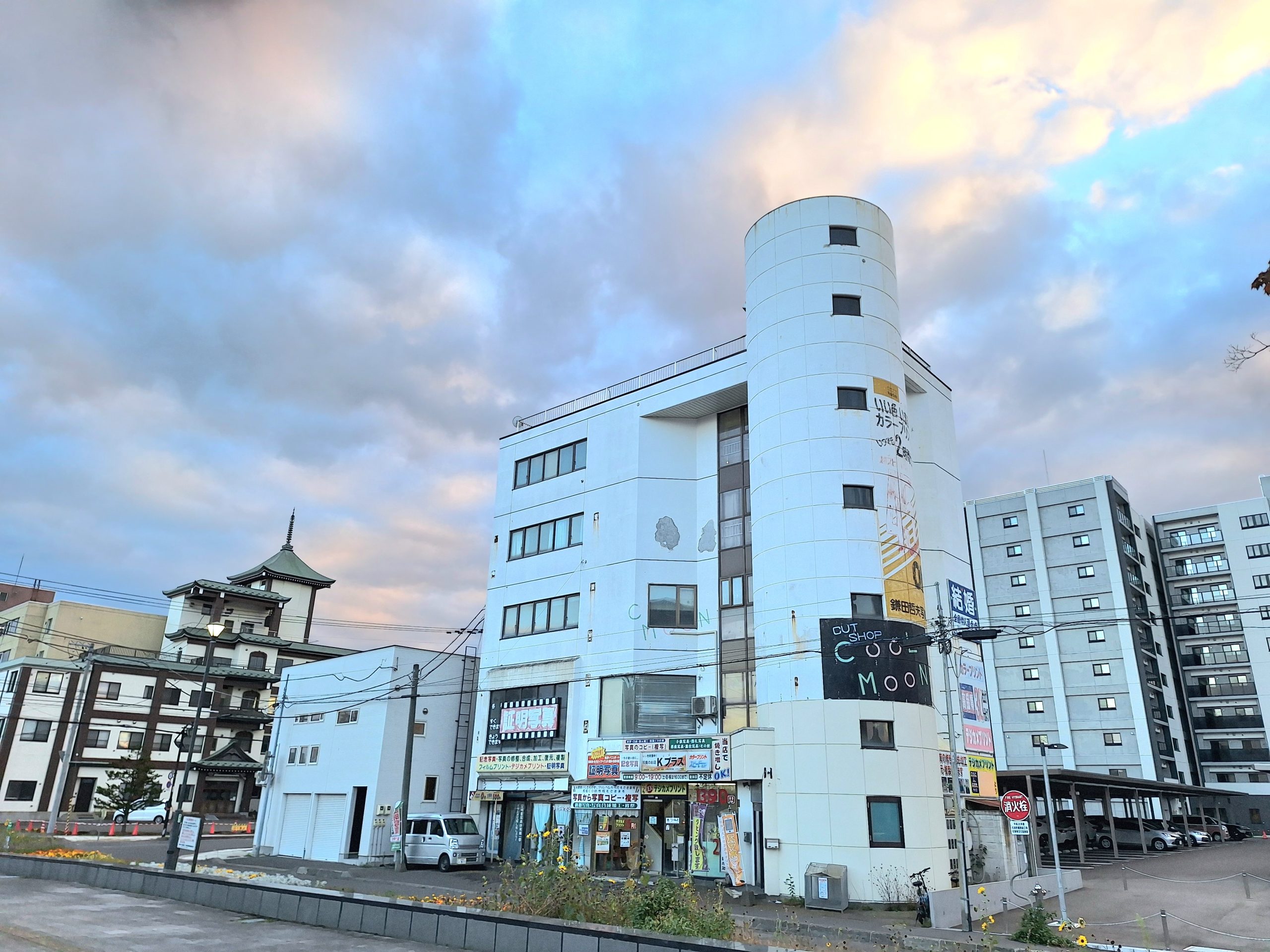 「このビルが竣工した頃は、高架の千歳駅から屋上の看板が見えたそうですよ。その後、ホテルが建って見えなくなりましたが、街に彩りを添えることに一役買った存在でした」と話すのは、このビルの1階で写真店「Kプラス」を運営する中村智秀さん(57)。1986年10月に竣工したこのビルは、地元の写真店が建てたものだが、今は、大阪の不動産業者が所有している。当時から続いた写真店は廃業、中村さんはその跡を継いで、13年前から「Kプラス」を営業している。