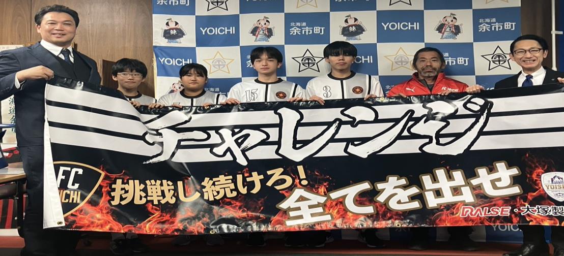 今回は、2025年4月26日から同年5月31日までの間、大塚製薬、NPO法人よいスポと連携し、余市町と小樽市の対象店舗で、大塚製薬商品を含む購入品のレシートの合計金額に応じて、グッズを寄贈する企画を実施。期間中の購入金額合計が20万円に達成したため、余市町の中学野球・サッカーチーム宛に横断幕とスポーツ用品の合計6点を寄贈、部活動の地域移行を支援した。今回の寄贈活動は、部活動の地域移行支援として北海道初の事例となり、2025年10月20日に、余市町役場で贈呈式が行われた。